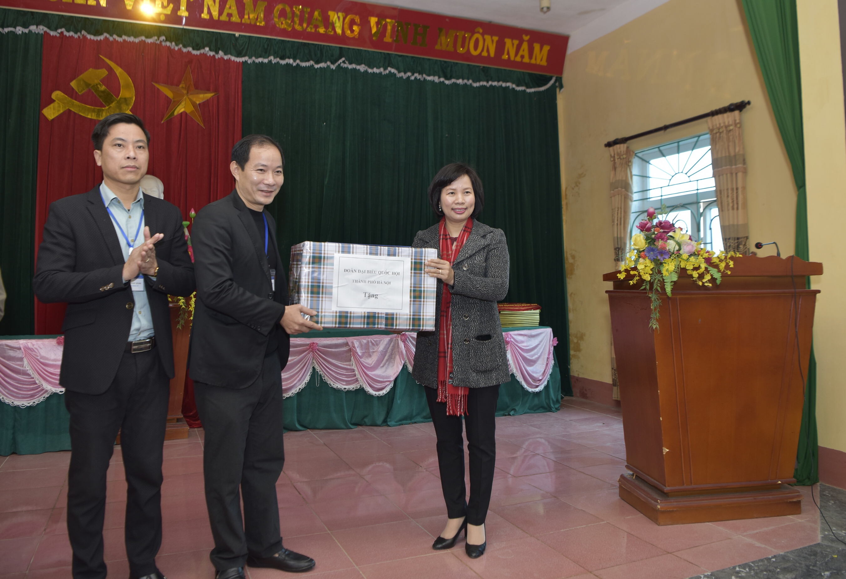 Phó trưởng Đoàn ĐBQH Hà Nội tặng quà HĐND-UBND-UBMTTQ xã Đông Quang (Ảnh: Xuân Hùng)