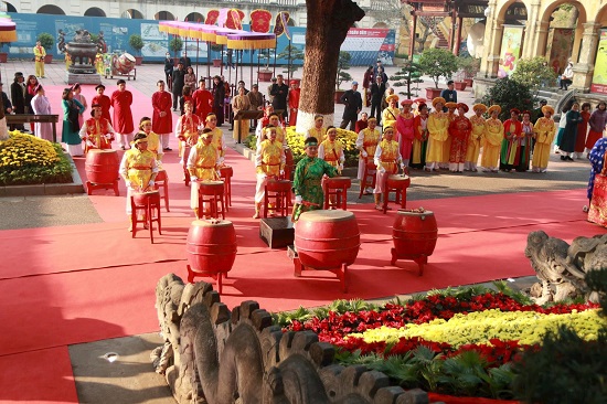 Biểu diễn trống hội tại Khu di sản Hoàng thành Thăng Long