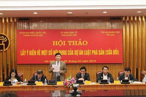 Ngày 05-3- 2014, Đoàn Đại biểu Quốc hội thành phố Hà Nội đã phối hợp với Ủy ban Kinh tế của Quốc hội và Tòa án nhân dân tối cao tổ chức lấy ý kiến đại biểu Quốc hội và các cơ quan liên quan vào Dự thảo Luật Phá sản (sửa đổi). Cùng dự hoạt động góp ý kiến có sự tham dự của các vị ĐBQH trong Đoàn, đại diện lãnh đạo một số bộ, ngành, doanh nghiệp, chuyên gia trong và ngoài nước.