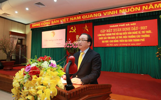 Chiều 15-1, trong không khí phấn khởi đón mừng Tết cổ truyền dân tộc Đinh Dậu 2017, TP Hà Nội tổ chức buổi gặp mặt đại biểu trí thức, văn nghệ sĩ, lãnh đạo các trường đại học, cao đẳng và các vị chức sắc tôn giáo tiêu biểu Thủ đô.
