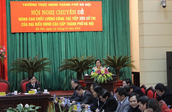 Bà Ngô Thị Doãn Thanh, Chủ tịch HĐND TP đã nhấn mạnh kết quả nổi bật của HĐND: Nâng cao vị thế của cơ quan quyền lực nhà nước ở địa phương tại cả 3 cấp TP, huyện và xã; từng bước làm tốt hơn vai trò cầu nối giữa nhân dân và chính quyền các cấp và dóng góp có trách nhiệm trong thực hiện nhiệm vụ chung. Về nhiệm vụ công tác năm 2014, Chủ tịch HĐND TP đề nghị HĐND các cấp cần tập trung phát huy những kinh nghiệm để phối hợp tốt với các cơ quan thực hiện thắng lợi nghị quyết HĐND các cấp, quan tâm thực hiện tốt Hiến pháp và Luật Thủ đô; thực hiện đúng quy định về tổ chức Kỳ họp HĐND; triển khai, thực hiện Nghị quyết số 32 của HĐND TP về nâng cao năng lực, hiệu lực, hiệu quả giám sát; thực hiện Đề án 04 của Thành ủy và Đề án đổi mới công tác tiếp công dân của HĐND TP; và tiếp tục tổ chức, nâng cao chất lượng giao ban chuyên đề của HĐND các cấp.