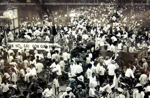 Các tầng lớp nhân dân Sài Gòn tham dự mít tinh mừng chiến thắng