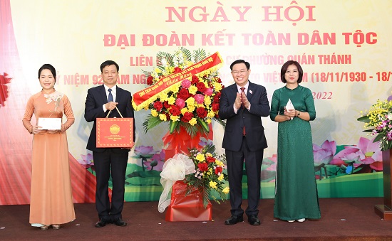 Tối 13/11/2022, chào mừng kỷ niệm 92 năm Ngày truyền thống Mặt trận Tổ quốc Việt Nam (18/11/1930-18/11/2022), Ủy viên Bộ Chính trị, Chủ tịch Quốc hội Vương Đình Huệ đã tới dự và chung vui với nhân dân liên địa bàn dân cư phường Quán Thánh, quận Ba Đình, thành phố Hà Nội trong Ngày hội Đại đoàn kết toàn dân tộc.