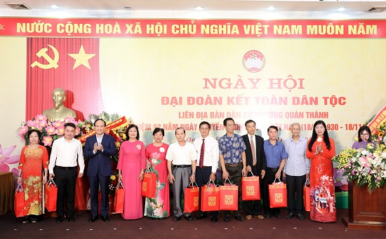 Tối 13/11/2022, chào mừng kỷ niệm 92 năm Ngày truyền thống Mặt trận Tổ quốc Việt Nam (18/11/1930-18/11/2022), các đồng chí lãnh đạo Trung ương và Thành phố Hà Nội đã tới dự và chung vui với nhân dân liên địa bàn dân cư phường Quán Thánh, quận Ba Đình trong Ngày hội Đại đoàn kết toàn dân tộc.