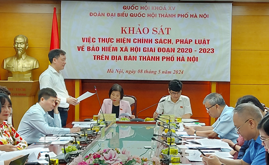 Sáng 8/5/2024, Đoàn đại biểu Quốc hội thành phố Hà Nội đã khảo sát việc thực hiện chính sách, pháp luật về bảo hiểm xã hội (BHXH) giai đoạn 2020-2023 tại Bảo hiểm xã hội thành phố Hà Nội.