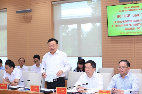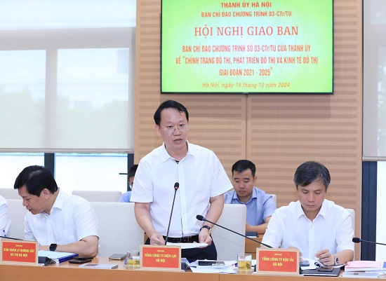 Sáng 18/10/2024, Ban Chỉ đạo Chương trình 03-CTr/TU của Thành uỷ Hà Nội về “chỉnh trang đô thị, phát triển đô thị và kinh tế đô thị” họp giao ban nhằm đánh giá tình hình thực hiện nhiệm vụ 9 tháng đầu năm và triển khai nhiệm vụ trọng tâm những tháng cuối năm 2024.