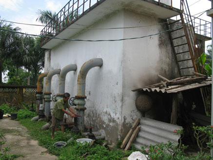Trưa đầu hè, con đường đê xanh mướt dẫn vào xã Phù Đổng, huyện Gia Lâm vắng hoe, không một bóng người qua lại. Sau vài lần hỏi thăm, chúng tôi cũng tìm được trạm cấp nước sạch nằm khuất phía sau trại nuôi cây giống. Khó ai có thể hình dung nổi, 12 năm về trước, nơi đây từng là một trạm cấp nước sạch có dung tích lớn vào loại nhất, nhì của huyện Gia Lâm, với số vốn đầu tư lên tới 4,5 tỷ đồng. Nằm trên khoảng đất rộng, khu vực sân xung quanh bể lọc chứa nước nay đã được vây kín bởi đất, rác và hàng trăm cây cảnh, chậu cảnh đủ loại... Sau nhiều năm bỏ hoang, toàn bộ đường ống và hệ thống rào sắt bảo vệ trong khu bể lọc bị gỉ sét, các hạng mục như hệ thống bơm cấp hai, hệ thống khử trùng, bể lắng... đều trong tình trạng mục nát, phủ kín rêu xanh. Theo một người dân sống ở thôn Phù Đổng 1, trạm cấp nước xã Phù Đổng được xây dựng năm 2001 với công suất thiết kế ban đầu lên tới 120 m3/giờ. Sau khi việc xây dựng hoàn tất, trạm được bàn giao cho HTX Dịch vụ nông nghiệp Phù Đổng khai thác. Thời gian đầu, hệ thống bơm hoạt động khá tốt, chất lượng nguồn nước cung cấp bảo đảm. Nhưng khi hệ thống đường ống trục chính được lắp đặt xong cũng là lúc trạm đứng trước nguy cơ ngưng hoạt động. Lý do chủ yếu là người dân không có nhu cầu dùng nước sạch. Nói chính xác hơn, việc bỏ ra hàng triệu đồng "đầu tư ban đầu" để lắp đặt đường ống và số tiền sử dụng hằng tháng là quá xa xỉ với thu nhập của đa số người dân trong xã. Dân không mấy mặn mà nên chỉ sau 3 năm, cả xã chỉ có khoảng 100 hộ trên tổng số 3.000 hộ dân đăng ký dùng nước sạch. Thu không đủ bù chi, trạm cấp nước đành tạm ngưng hoạt động và nằm "đắp chiếu".