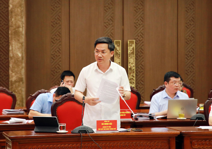 Phó Chủ tịch UBND Thành phố Hà Minh Hải trình bày báo cáo tại hội nghị