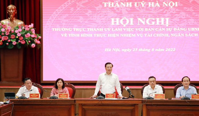 Chiều 25/8/2022, Thường trực Thành ủy Hà Nội làm việc với Ban Cán sự đảng UBND Thành phố về tình hình thực hiện nhiệm vụ tài chính, ngân sách năm 2022.