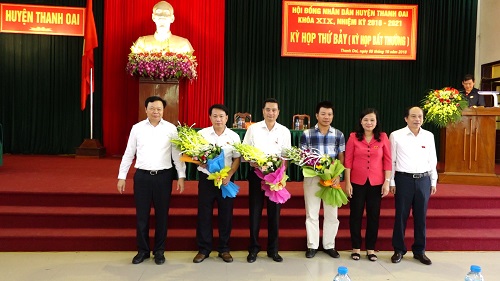 Lãnh đạo huyện Thanh Oai tặng hoa chúc mừng các đồng chí mới được bầu