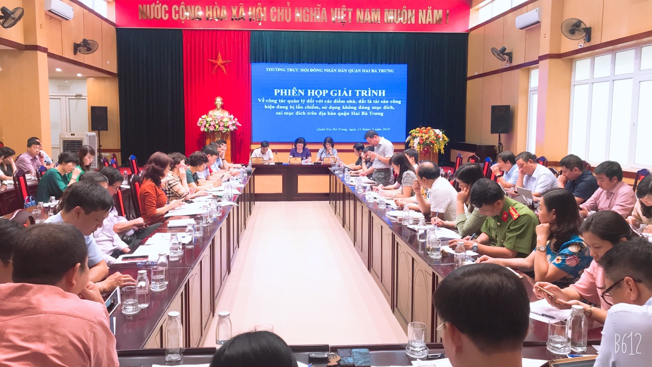 Ngày 13/9/2019, tại trụ sở HĐND&UBND quận Hai Bà Trưng, Thường trực HĐND quận đã tổ chức phiên giải trình về công tác quản lý đối với các điểm nhà, đất là tài sản công hiện đang bị lấn chiếm, sử dụng không đúng mục đích, sai mục đích trên địa bàn quận.