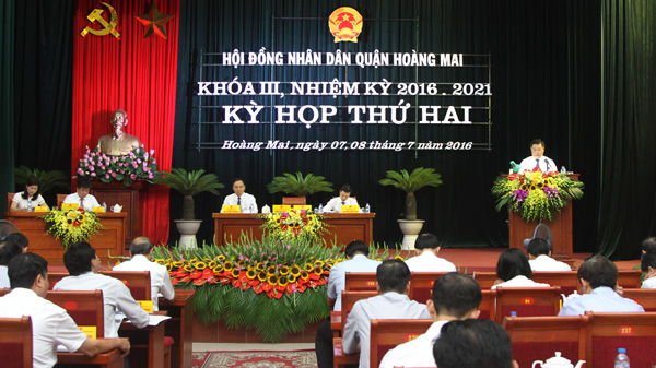 Sáng 7/7, HĐND quận Hoàng Mai khai mạc kỳ họp thứ hai HĐND quận khóa 3, nhiệm kỳ 2016 - 2021. Đồng chí Nguyễn Ngọc Tuấn, Ủy viên Ban Thường vụ Thành ủy, Phó Chủ tịch Thường trực HĐND Thành phố đã đến dự.