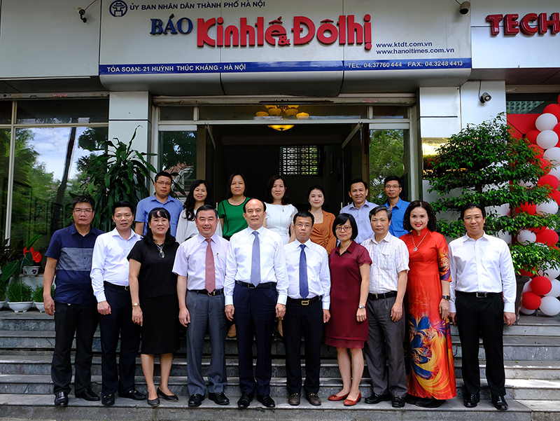 Phó Chủ tịch Thường trực HĐND TP Nguyễn Ngọc Tuấn chụp ảnh lưu niệm cùng đại diện lãnh đạo, quản lý, cán bộ Báo Kinh tế đô thị.