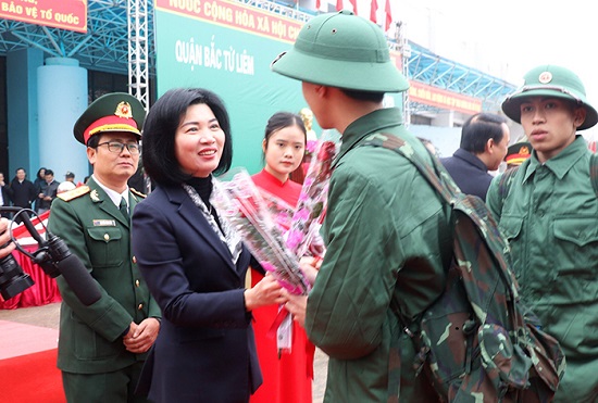 Phó Chủ tịch Thường trực HĐND Thành phố Phùng Thị Hồng Hà dự lễ giao nhận quân tại quận Bắc Từ Liêm
