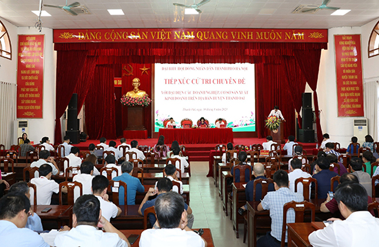 Sáng 30/8/2023, Ủy viên Ban Thường vụ Thành ủy, Phó Chủ tịch Thường trực HĐND Thành phố Phùng Thị Hồng Hà cùng các đại biểu HĐND Thành phố thuộc đơn vị bầu cử số 14 đã tiếp xúc cử tri chuyên đề với đại diện các doanh nghiệp, cơ sở sản xuất kinh doanh trên địa bàn huyện Thanh Oai.