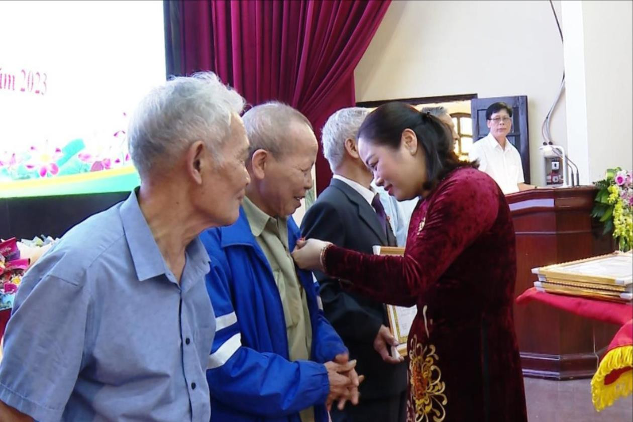 Phó Chủ tịch Thường trực HĐND Thành phố Phùng Thị Hồng Hà trao Huy hiệu Đảng tặng các đảng viên