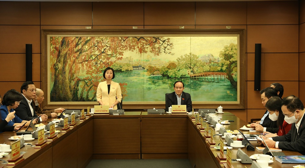 Phó Trưởng Đoàn ĐBQH chuyên trách Phạm Thị Thanh Mai chủ trì thảo luận Tổ về Dự án Luật Kinh doanh bảo hiểm (sửa đổi)