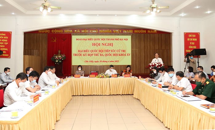 Sáng 28/4/2022, Phó Bí thư Thành ủy, Chủ tịch HĐND thành phố, Phó Trưởng đoàn ĐBQH TP Nguyễn Ngọc Tuấn cùng các đại biểu Quốc hội thuộc Đơn vị bầu cử số 3 đã tiếp xúc cử tri theo hình thức trực tiếp kết hợp trực tuyến ở 32 điểm cầu UBND cấp quận và các phường thuộc 3 quận: Nam Từ Liêm, Cầu Giấy, Thanh Xuân.