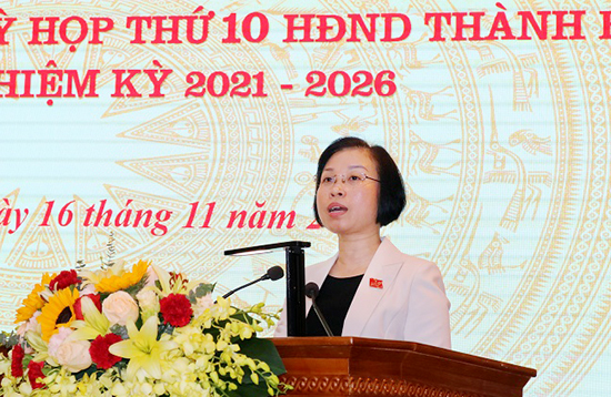 Phó Trưởng đoàn chuyên trách Đoàn ĐBQH Thành phố Phạm Thị Thanh Mai phát biểu tại hội nghị