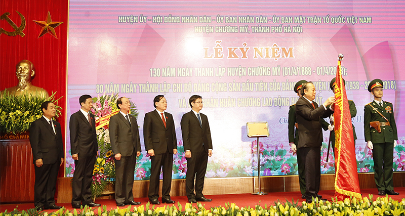 Sáng 24/11, Đảng bộ, chính quyền và nhân dân huyện Chương Mỹ long trọng tổ chức Lễ kỷ niệm 130 năm ngày thành lập huyện (1/4/1888 - 1/4/2018), 80 năm ngày thành lập Chi bộ Đảng Cộng sản đầu tiên của Đảng bộ huyện (26/11/1938 - 26/11/2018) và đón nhận Huân chương Lao động hạng Nhất.
