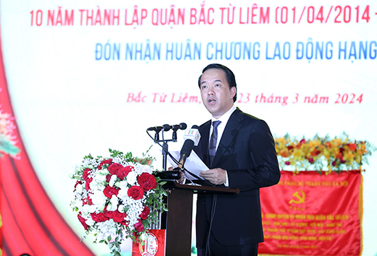Tại buổi lễ, Bí thư Thành ủy Đinh Tiến Dũng đã trao Huân chương Lao động hạng Nhì cho quận Bắc Từ Liêm và trao tặng nhân dân, cán bộ quận Bắc Từ Liêm bức trướng với dòng chữ: “ Đảng bộ, chính quyền và nhân dân quận Bắc Từ Liêm Đoàn kết – dân chủ - kỷ cương - đổi mới - sáng tạo, phát huy thành tựu 10 năm đạt được, xây dựng quận phát triển bền vững, văn minh, hiện đại”./.
