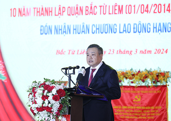 Phát biểu tại buổi lễ, Chủ tịch UBND Thành phố Trần Sỹ Thanh biểu dương và chúc mừng những thành tích Đảng bộ, chính quyền và nhân dân quận Bắc Từ Liêm đã đạt được trong 10 năm qua.