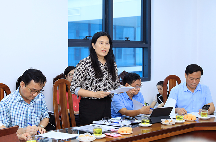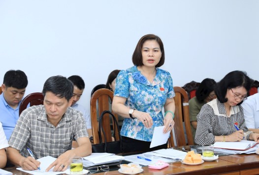 Phó Trưởng ban Văn hoá-Xã hội HĐND Thành phố Hoàng Thị Tú Anh trao đổi tại buổi giám sát