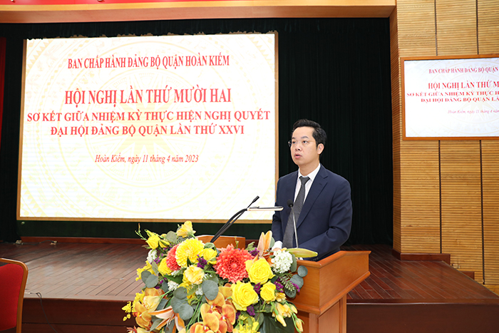 Về nhiệm vụ từ nay đến hết nhiệm kỳ, đồng chí Nguyễn Ngọc Tuấn đề nghị Ban Thường vụ, Ban Chấp hành Đảng bộ quận tập trung lãnh đạo, chỉ đạo kiên quyết khắc phục những tồn tại, hạn chế được chỉ ra sau Hội nghị sơ kết giữa nhiệm kỳ Đại hội Đảng bộ Quận lần thứ 26 với những giải pháp, kế hoạch, lộ trình thực hiện cụ thể; phân công trách nhiệm rõ ràng gắn với trách nhiệm người đứng đầu; thực hiện tốt Quy chế làm việc của Quận ủy và các cấp ủy, các quy chế phối hợp giải quyết các công việc liên quan đến nhiều cấp, nhiều ngành gắn với kỷ luật, kỷ cương hành chính.