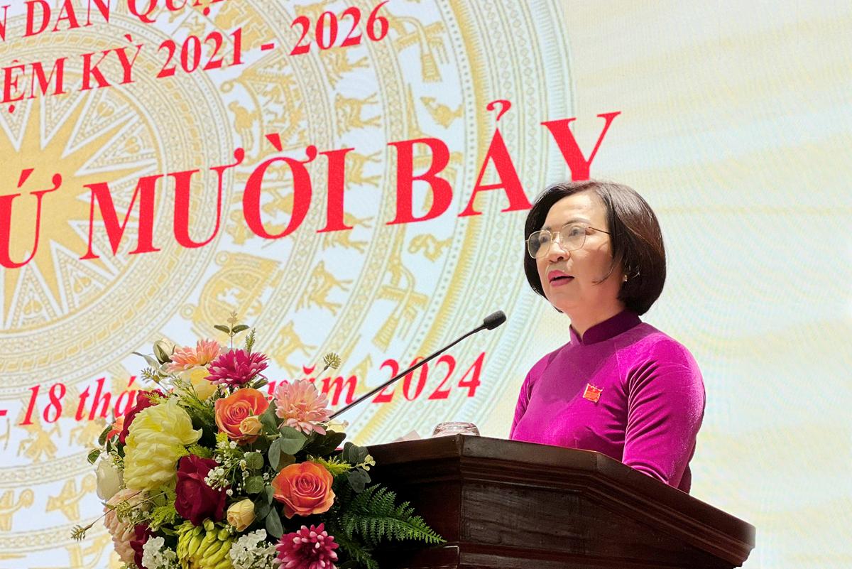 Phát biểu khai mạc kỳ họp, Bí thư Quận ủy, Chủ tịch HĐND quận Lê Thị Thu Hằng cho biết, tại kỳ họp này, HĐND quận sẽ xem xét, đánh giá tình hình thực hiện nhiệm vụ phát triển kinh tế - xã hội, an ninh, quốc phòng, thu, chi ngân sách năm 2024 và quyết định kế hoạch phát triển kinh tế - xã hội năm 2025 của quận.