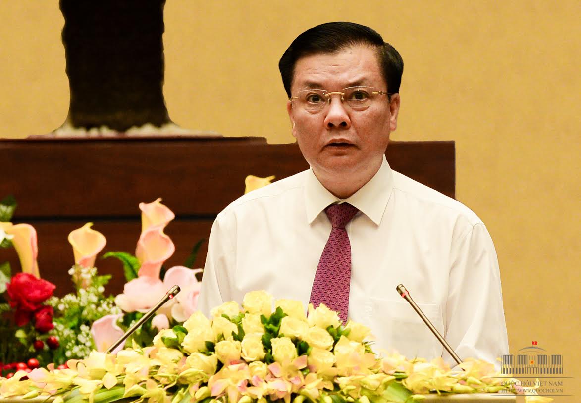 Bộ trưởng Tài chính Đinh Tiến Dũng trình bày dự thảo. Ảnh: quochoi.vn
