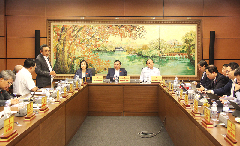 Sáng 03/11/2022, Quốc hội thảo luận tại tổ về dự án Luật Đất đai (sửa đổi). Tại Đoàn ĐBQH thành phố Hà Nội, chủ trì buổi thảo luận có đồng chí Đinh Tiến Dũng, Ủy viên Bộ Chính trị, Bí thư Thành ủy, Trưởng đoàn ĐBQH thành phố; đồng chí Nguyễn Ngọc Tuấn, Phó Bí thư Thành ủy, Chủ tịch HĐND thành phố, Phó Trưởng đoàn ĐBQH thành phố; đồng chí Phạm Thị Thanh Mai, Phó Trưởng đoàn chuyên trách Đoàn ĐBQH thành phố.