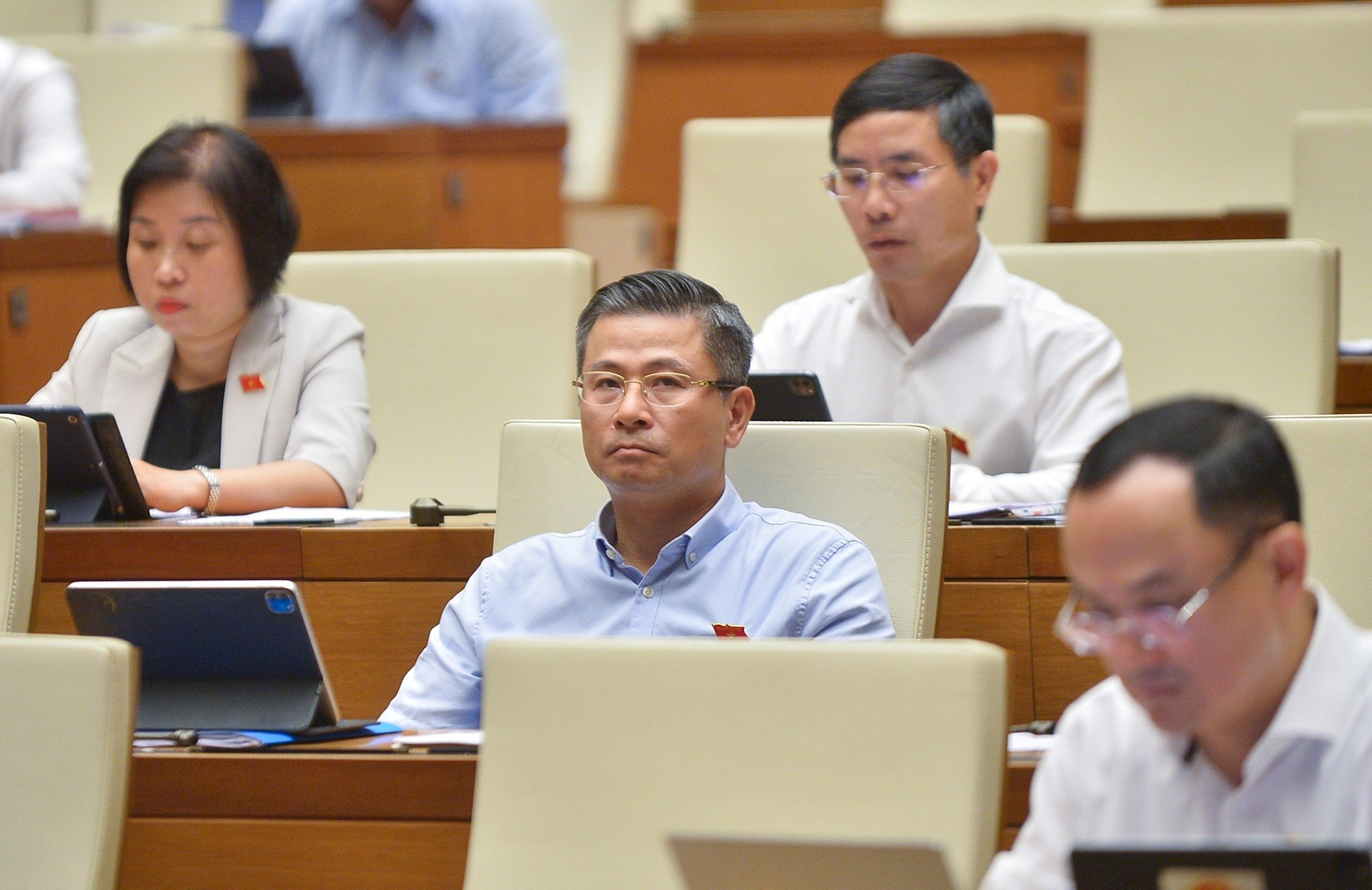 Các đại biểu Quốc hội đoàn Hà Nội tham dự phiên họp sáng 19/6 tại hội trường