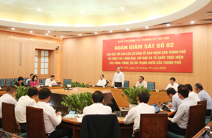 Sáng 18/10/2022, Đoàn giám sát số 02 của Ban Thường vụ Thành ủy đã làm việc với Ban cán sự Đảng UBND Thành phố về công tác lãnh đạo, chỉ đạo và tổ chức thực hiện các công trình, dự án trọng điểm của Thành phố.