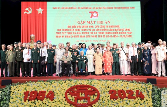 Kỷ niệm 70 năm Ngày giải phóng Thủ đô (10/10/1954 - 10/10/2024), ngày 3-10, Thành ủy - HĐND - UBND - Ủy ban MTTQ Việt Nam thành phố Hà Nội tổ chức gặp mặt, tri ân các Bà mẹ Việt Nam Anh hùng, Anh hùng LLVT nhân dân, cán bộ lão thành cách mạng, các cựu chiến binh, cựu công an nhân dân, cựu thanh niên xung phong và các gia đình chính sách, người có công trực tiếp tham gia Giải phóng Thủ đô trên địa bàn thành phố.