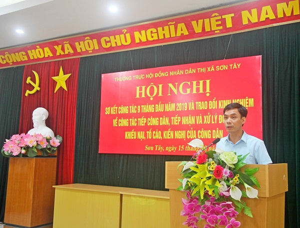 Chiều ngày 15/10, Thường trực HĐND thị xã tổ chức hội nghị sơ kết 9 tháng năm 2019 và trao đổi kinh nghiệm về công tác tiếp công dân, tiếp nhận và xử lý đơn thư khiếu nại, tố cáo, kiến nghị của công dân.