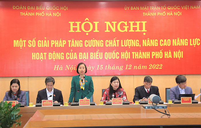 Chiều 15/12/2022, Đoàn đại biểu Quốc hội thành phố Hà Nội phối hợp cùng Ủy ban Mặt trận Tổ quốc Việt Nam thành phố tổ chức hội nghị “Một số giải pháp tăng cường chất lượng, nâng cao năng lực hoạt động của đại biểu Quốc hội thành phố Hà Nội”.
