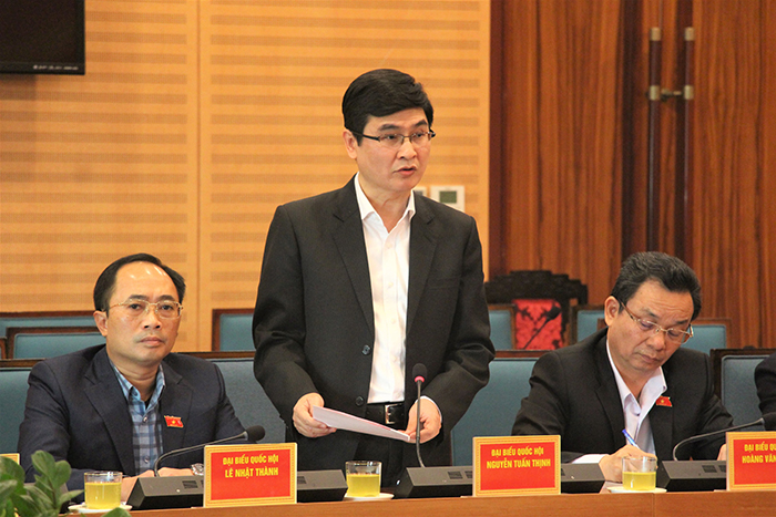 Đại biểu Quốc hội chuyên trách Đoàn ĐBQH thành phố Nguyễn Tuấn Thịnh phát biểu tại hội nghị