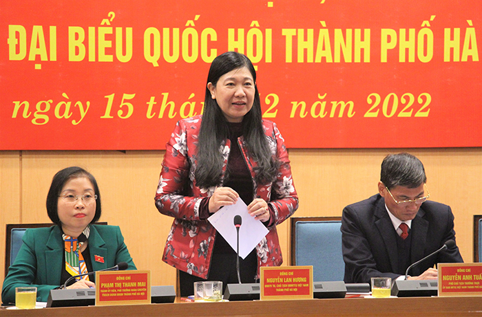 Dự hội nghị có Ủy viên Ban Thường vụ Thành ủy, Chủ tịch Ủy ban Mặt trận Tổ quốc Việt Nam thành phố Hà Nội Nguyễn Lan Hương và các đại biểu Quốc hội thành phố. Phó Trưởng đoàn chuyên trách Đoàn đại biểu Quốc hội thành phố Phạm Thị Thanh Mai chủ trì hội nghị.