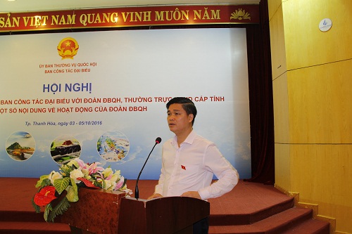 Ngày 3/10/2016, tại thành phố Thanh Hóa, tỉnh Thanh hóa, Ban Công tác đại biểu của Ủy ban Thường vụ Quốc hội tổ chức hội nghị công tác phối hợp giữa Ban Công tác đại biểu với Đoàn ĐBQH, Thường trực HĐND cấp tỉnh và một số nội dung về hoạt động của Đoàn ĐBQH.