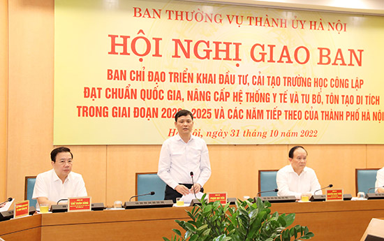 Chiều 31/10/2022, Ban Chỉ đạo triển khai đầu tư, cải tạo trường học công lập đạt chuẩn quốc gia, nâng cấp hệ thống y tế và tu bổ, tôn tạo di tích trong giai đoạn 2022-2025 và các năm tiếp theo của thành phố Hà Nội tổ chức hội nghị giao ban triển khai một số nhiệm vụ trọng tâm của Ban Chỉ đạo những tháng cuối năm 2022.