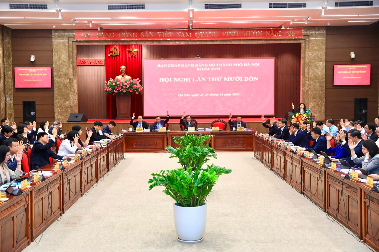 Sáng 24-11, tiếp tục chương trình Hội nghị lần thứ mười bốn, Ban Chấp hành Đảng bộ thành phố Hà Nội (khoá XVII) tiếp tục thảo luận, nghe giải trình của đại diện các cơ quan có thẩm quyền về ý kiến đóng góp vào 8 nội dung quan trọng, trong đó có Đồ án Điều chỉnh Quy hoạch chung Thủ đô Hà Nội đến năm 2045, tầm nhìn đến năm 2065, các chương trình, kế hoạch năm 2024 và dự thảo Chỉ thị về tăng cường sự lãnh đạo của cấp ủy Đảng về xây dựng người Hà Nội thanh lịch, văn minh.
