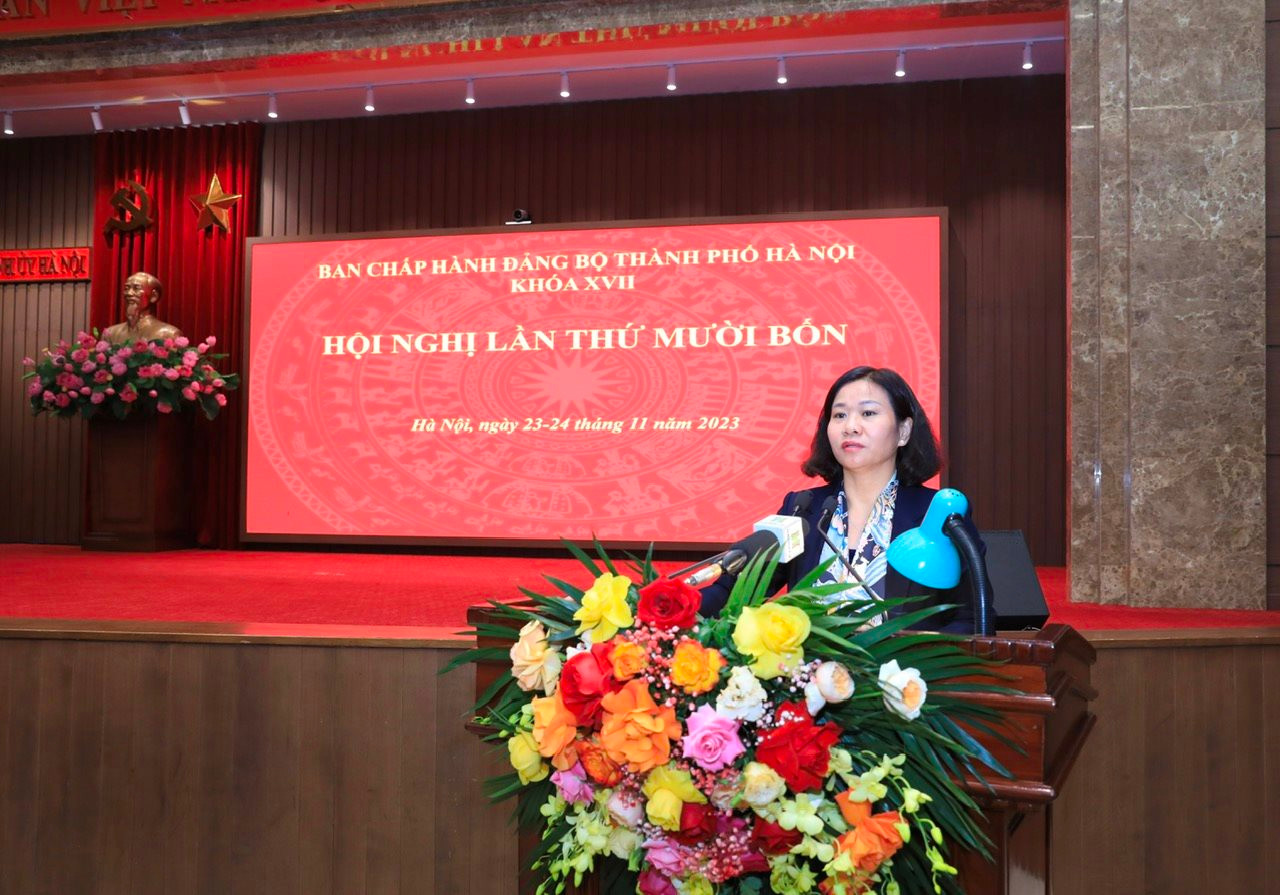 Phó Bí Thư Thường trực Thành ủy Nguyễn Thị Tuyến trình bày dự thảo Nghị quyết.