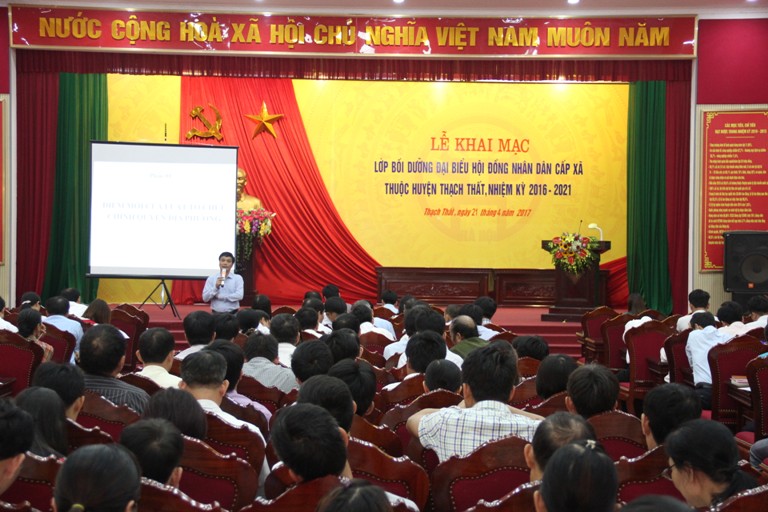 Huyện Thạch Thất vừa tổ chức lớp bồi dưỡng đại biểu HĐND cấp xã, nhiệm kỳ 2016-2021. Dự lớp tập huấn diễn ra trong hai ngày có 306 học viên là đại biểu HĐND của 12 xã: Cẩm Yên, Đại Đồng, Lại Thượng, Phú Kim, Liên Quan, Hương Ngải, Canh Nậu, Dị Nậu, Chàng Sơn, Cần Kiệm, Thạch Xá và Hữu Bằng.