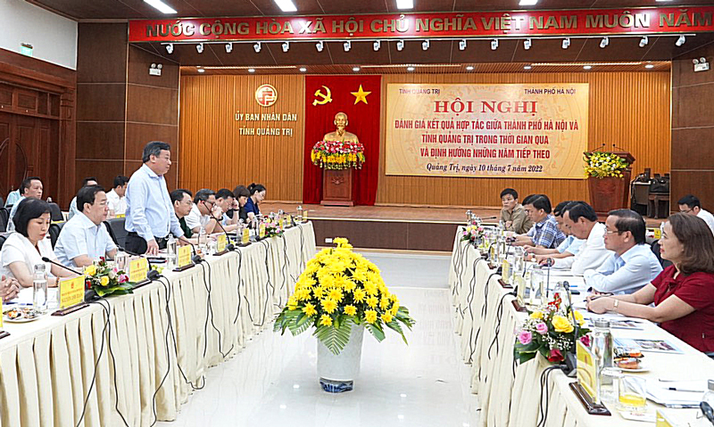 Sáng 10/7/2022, tại trụ sở UBND tỉnh Quảng Trị, thành phố Hà Nội và tỉnh Quảng Trị phối hợp tổ chức Hội nghị đánh giá kết quả hợp tác giữa thành phố Hà Nội và tỉnh Quảng Trị trong thời gian qua và định hướng những năm tiếp theo.