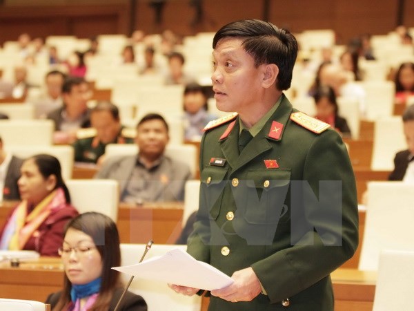 Đại biểu Quốc hội tỉnh Bắc Giang Ngô Minh Tiến phát biểu ý kiến. (Ảnh: Phương Hoa/TTXVN)
