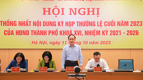 Chiều 11/10/2023, Thường trực HĐND, UBND, Ủy ban Mặt trận Tổ quốc Việt Nam thành phố Hà Nội tổ chức hội nghị thống nhất nội dung kỳ họp thường lệ cuối năm 2023 của HĐND thành phố khóa XVI, nhiệm kỳ 2021-2026.