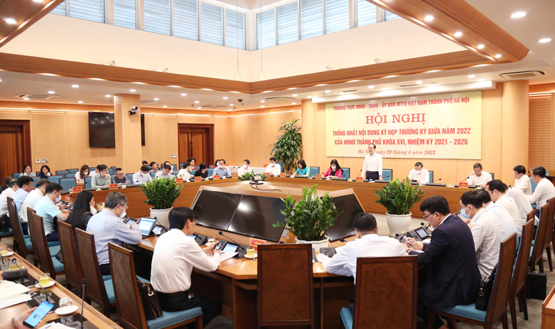 Chiều 29/4/2022, Thường trực HĐND, UBND, Ủy ban Mặt trận Tổ quốc Việt Nam thành phố Hà Nội tổ chức Hội nghị thống nhất nội dung kỳ họp thứ năm (kỳ họp thường kỳ giữa năm 2022) của HĐND thành phố khóa XVI, nhiệm kỳ 2021-2026.