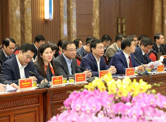 Lãnh đạo thành phố Hà Nội dự hội nghị có Ủy viên Trung ương Đảng, Phó Bí thư Thành ủy, Chủ tịch UBND thành phố Trần Sỹ Thanh; các Ủy viên Ban Thường vụ Thành ủy: Chủ nhiệm Ủy ban Kiểm tra Thành ủy Hoàng Trọng Quyết, Phó Chủ tịch UBND thành phố Nguyễn Trọng Đông; Phó Chủ tịch UBND thành phố Hà Minh Hải; Phó trưởng đoàn chuyên trách Đoàn đại biểu Quốc hội thành phố Phạm Thị Thanh Mai...