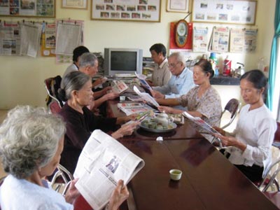 Nhà văn hóa thôn Bình Vọng, xã Văn Bình, huyện Thường Tín thu hút đông đảo người dân tới đọc sách báo và sinh hoạt văn hóa