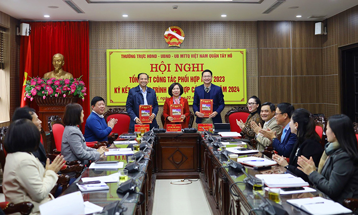 Thường trực HĐND - UBND - Ủy ban MTTQ Việt Nam quận Tây Hồ ký kết chương trình phối hợp công tác năm 2024